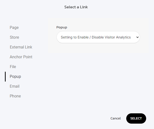 We've created a special System popup that allows your website visitors to disable the tracking cookies from the builder. You can find them when you link a popup at the very bottom.