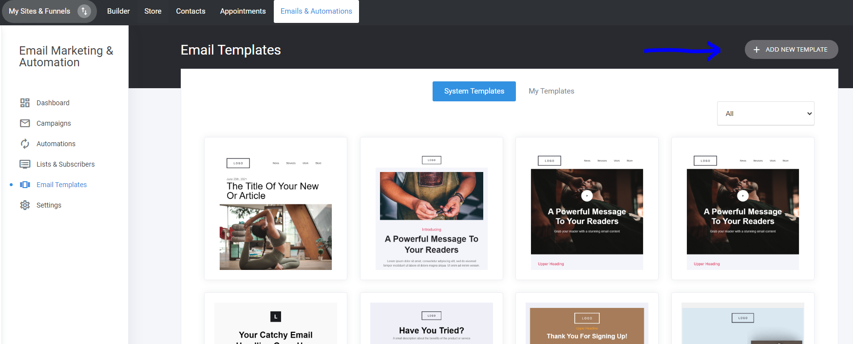 Simply go to the Email Templates area and click on My Templates -> Add New Template.